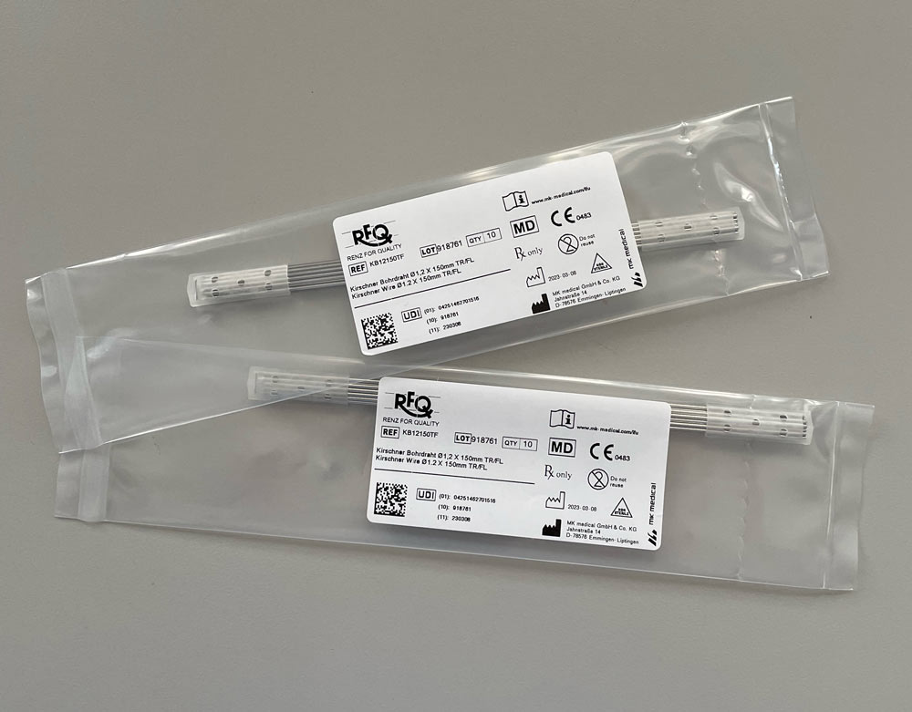 Kirschnertrådar används vid fixering av benfrakturer och benrekonstruktion i händer och fötter och som guide vid inläggning av andra implantat. De är inte avsedda för spinal användning. Högsta kvalitet rostfritt implantatstål 1.4441.